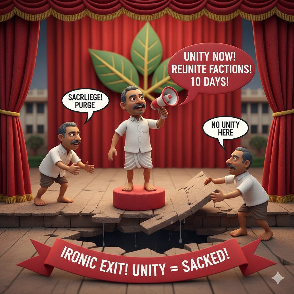 🎭 Tamil Nadu Politics: A Leader Is Sacked for Suggesting Unity