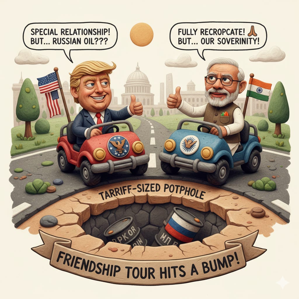 🤝 Trump and Modi's Friendship Tour Hits a Tariff-Sized Pothole