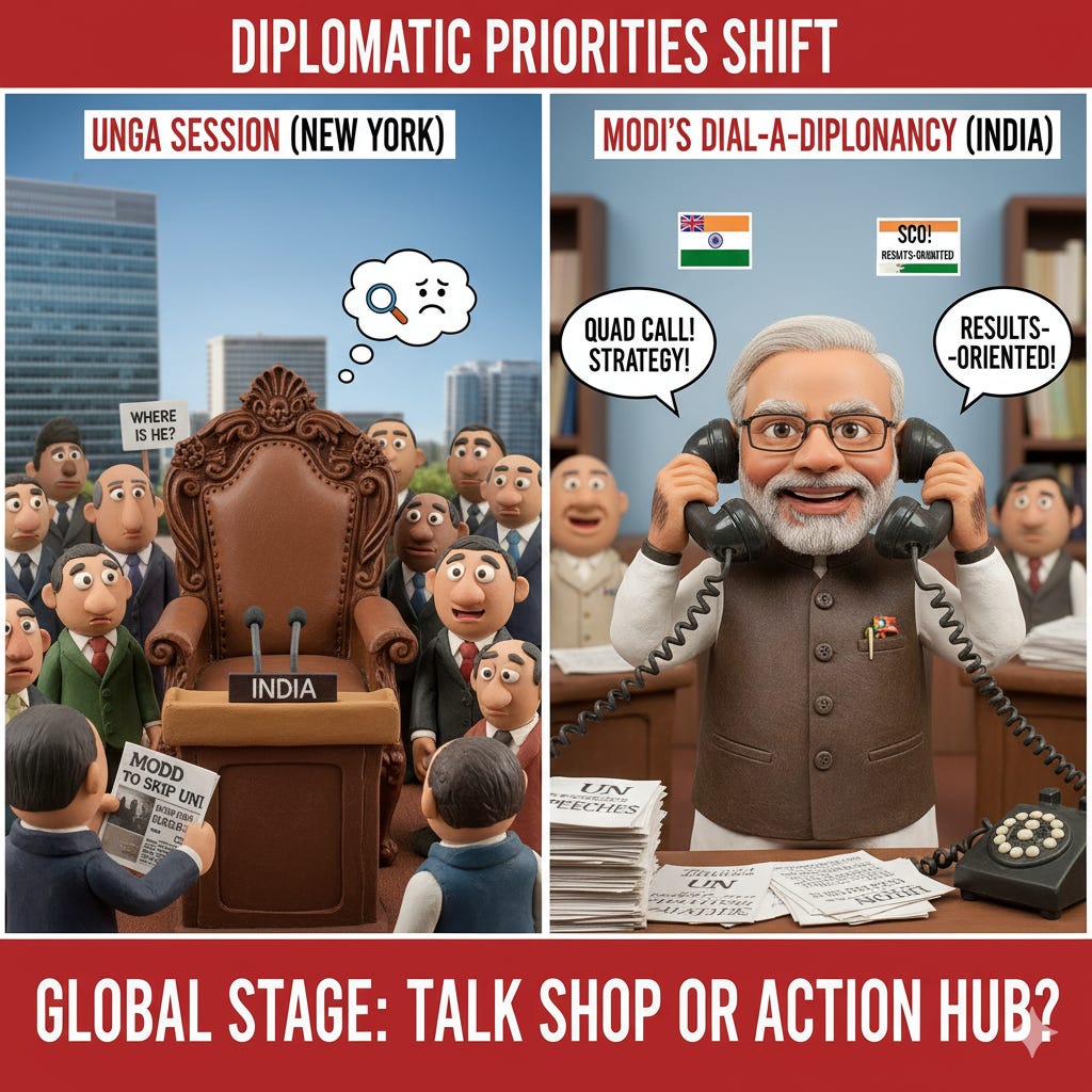 The Deeper Take: A leader's absence is also a diplomatic signal. This move suggests a downgrading of large, talk-heavy forums like the UNGA in favour of smaller, more results-oriented strategic groups like the SCO or Quad. Global priorities are shifting.