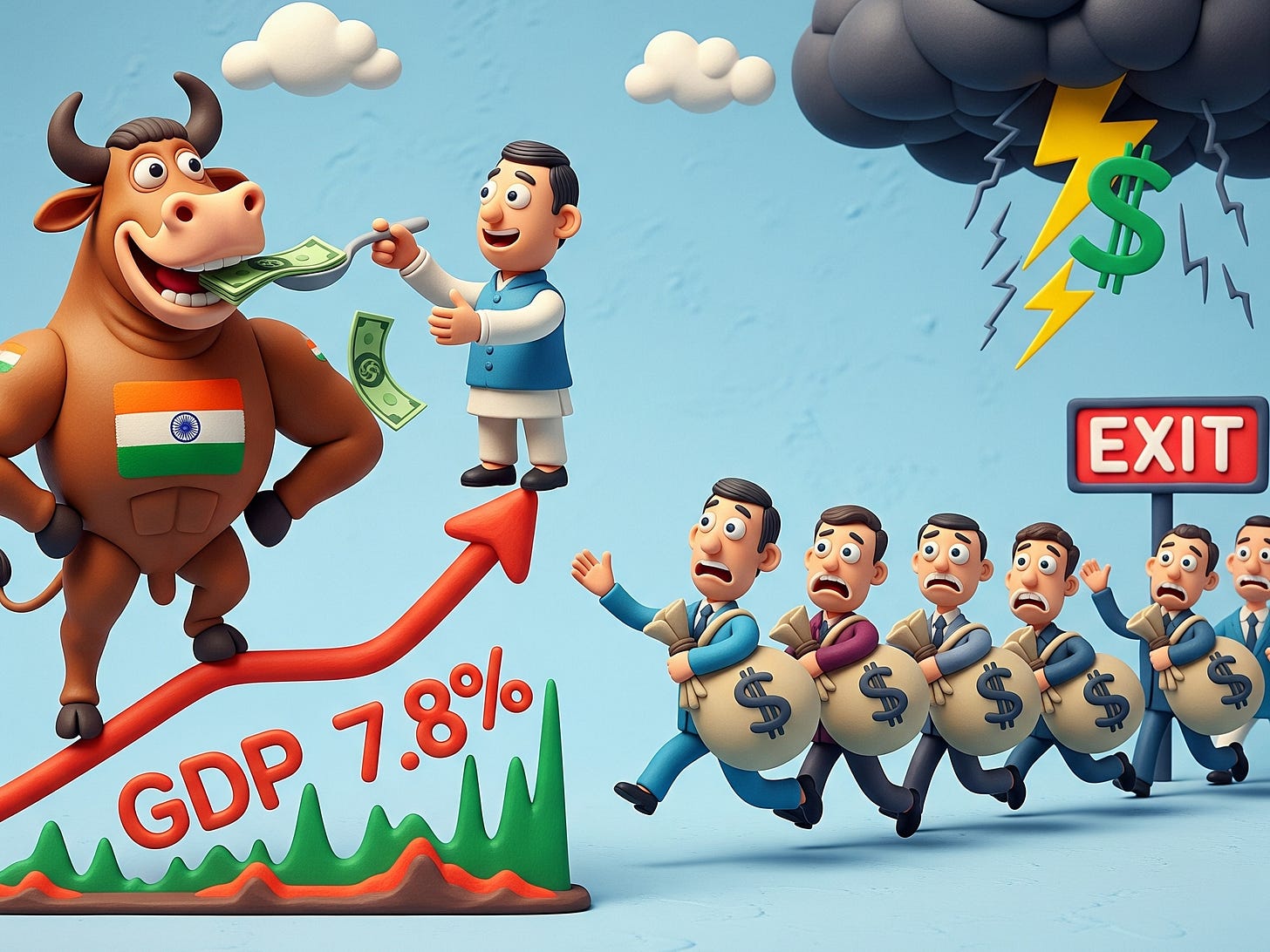 The Bottom Line: Welcome to India's economic schizophrenia. The government is pumping the domestic engine, but global investors see the US trade war storm clouds and are running for cover. The headline number and market sentiment are on two different planets.
