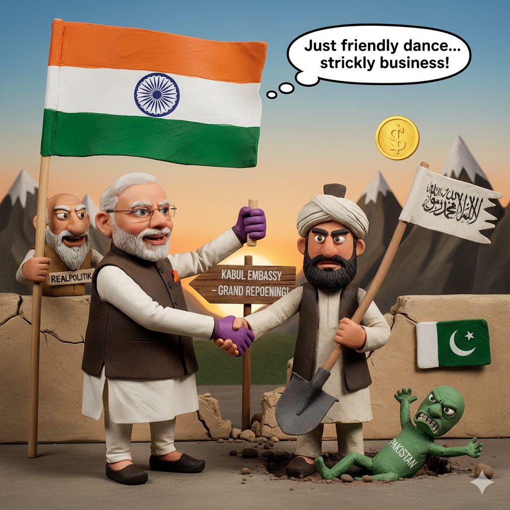 The Chessboard: This isn’t about friendship; it’s a cold, pragmatic move to counter Pakistani influence and secure a foothold in Afghanistan. India is playing the long game, prioritising regional realpolitik over Western-led ideological isolation. 🔗